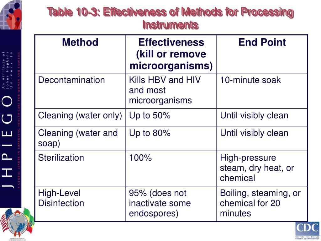Table 10-3: Effectiveness of Methods for Processing Instruments