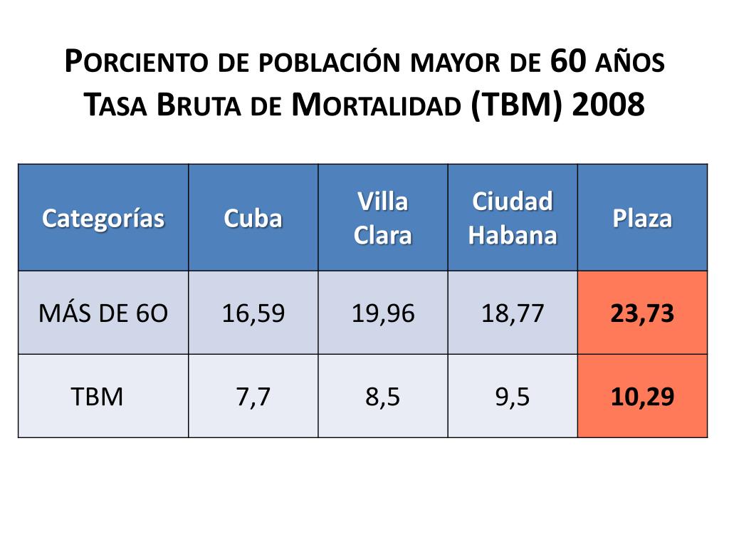 Población mayor de 60 añosCuba, provincias seleccionadas y municipio Plaza2007