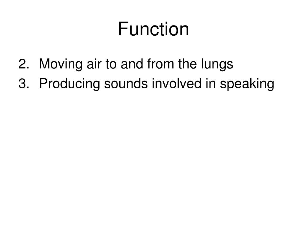 Function • Moving air to and from the lungs • Producing sounds involved in speaking