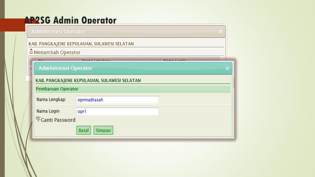 Propinsi Kab/Kota Direktorat/Bimas ADMINISTRASI USER Admin Admin Admin operator operator operator operator operator operator operator operator operator operator operator operator operator operator operator operator operator operator