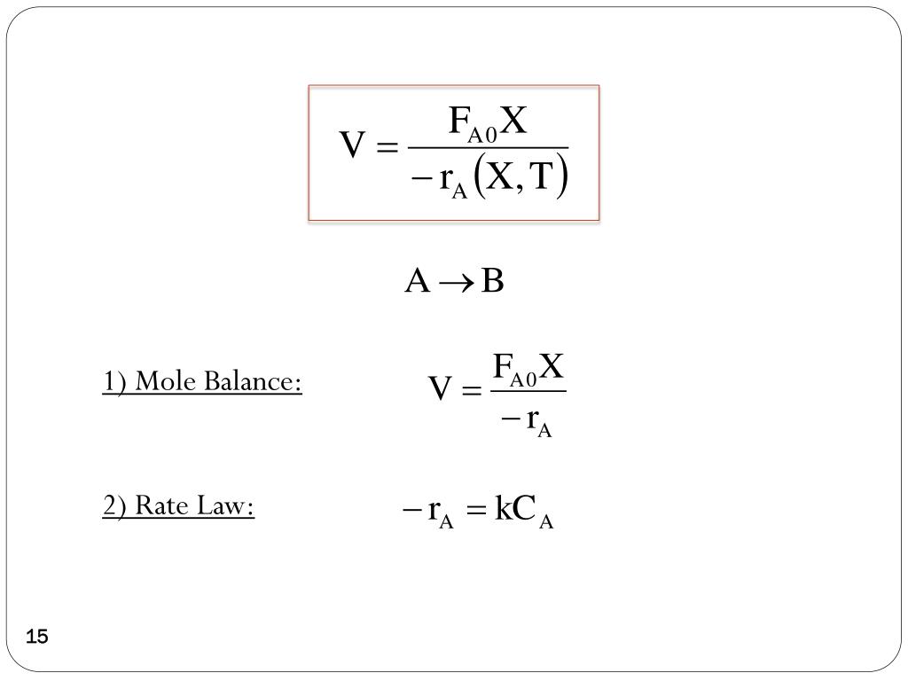 MSS - Generating G(T) and R(T) Need to solve for X after combining mole balance rate law and stoichiometry.