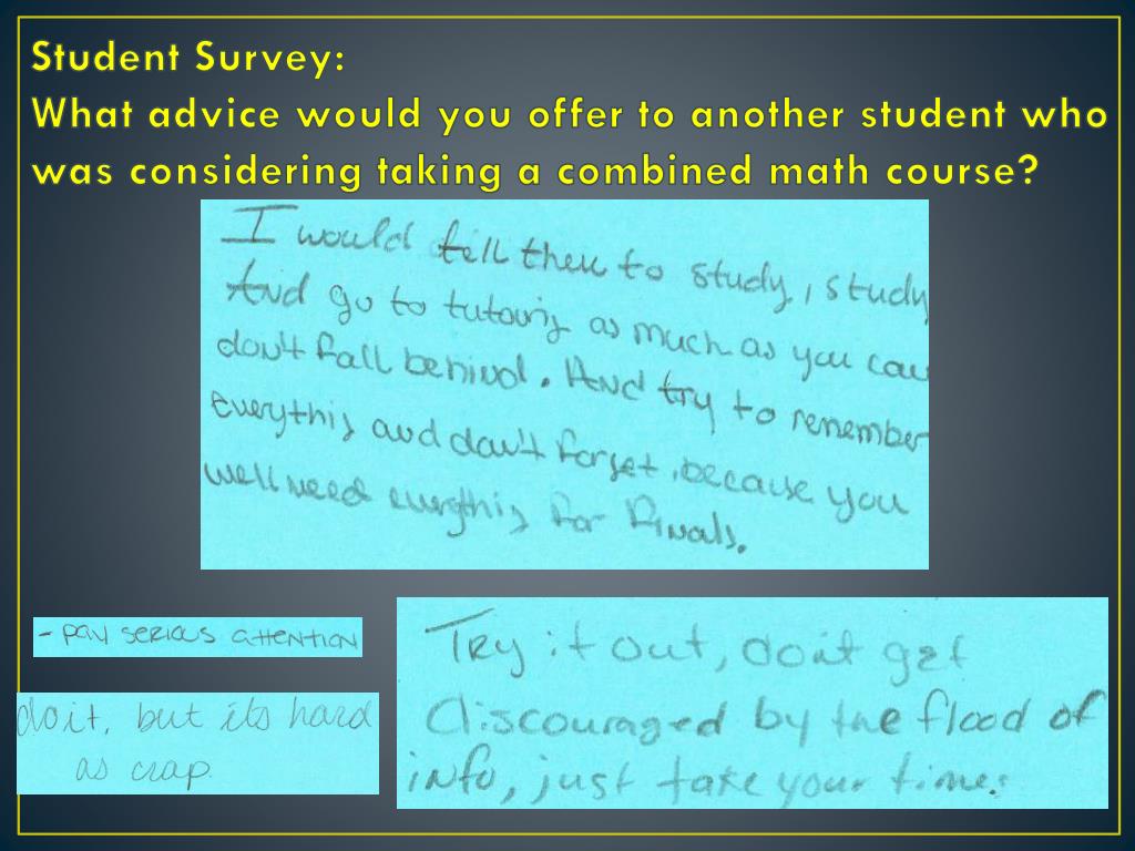Student Survey: What advice would you offer to another student who was considering taking a combined math course?