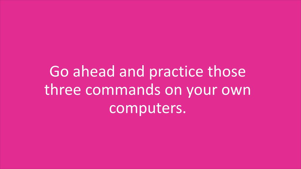 Be Careful • terminal is powerful • There is no undo • There are no ‘Are you sure?’ prompts • A typo can have unexpected consequences