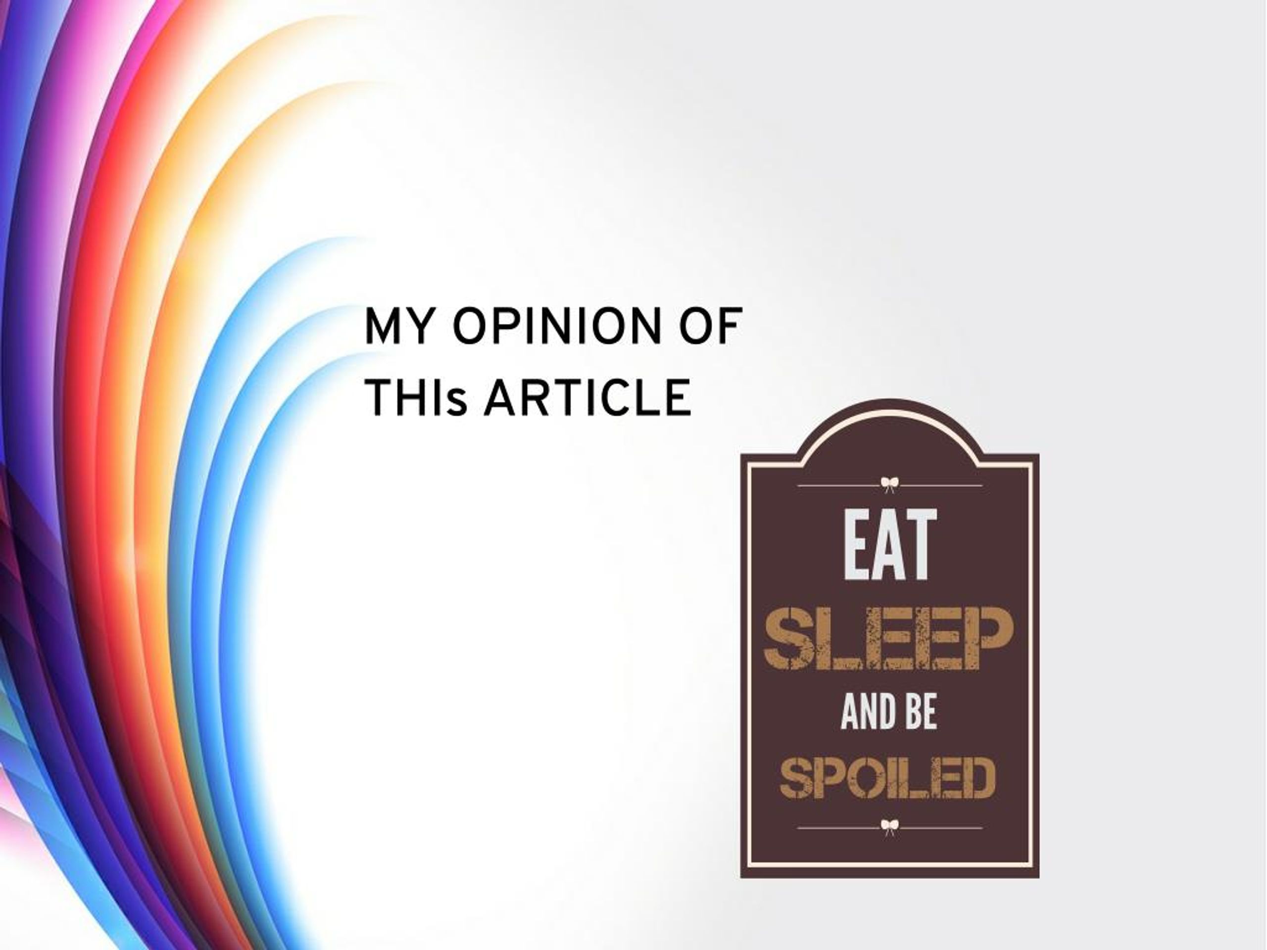 MY OPINION OF THIs ARTICLE EAT SLEEP AND BE SPOILED