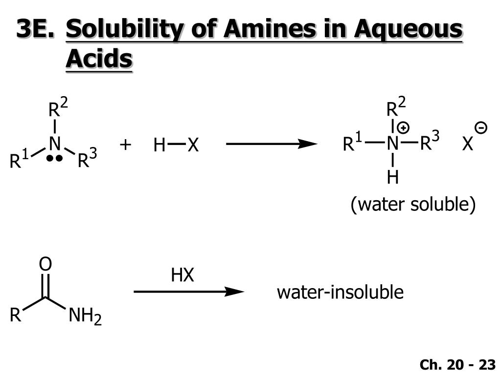 3C. Amines versus Amides • Amides are far less basic than amines (even less basic than arylamines). The pKa of the conjugate acid of a typical amide is about zero Larger resonance stabilization Smaller resonance stabilization