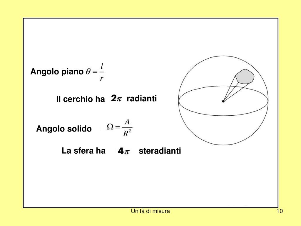 Angolo piano Il cerchio ha radianti Angolo solido La sfera ha steradianti Unità di misura