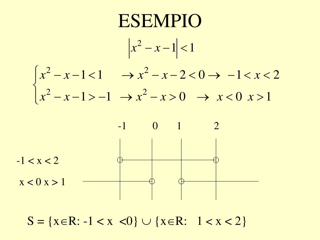 -1 0 1 2 -1 < x < 2 x < 0 x > 1 ESEMPIO S = {xR: -1 < x <0} {xR: 1 < x < 2}