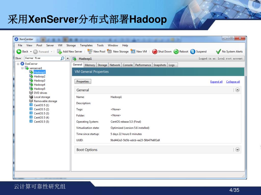采用XenServer分布式部署Hadoop 云计算可靠性研究组