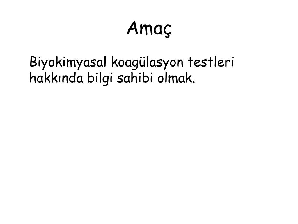 Amaç Biyokimyasal koagülasyon testleri hakkında bilgi sahibi olmak.