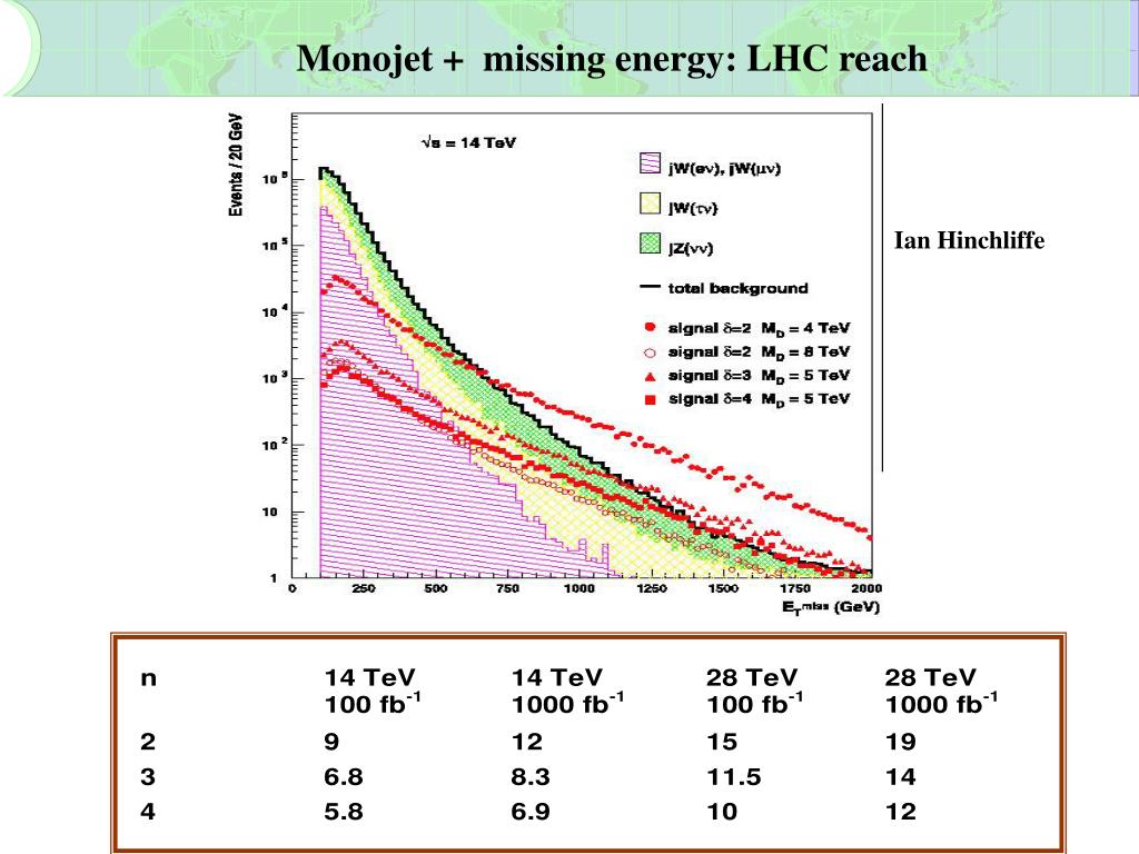 Monojet + missing energy: LHC reach Ian Hinchliffe