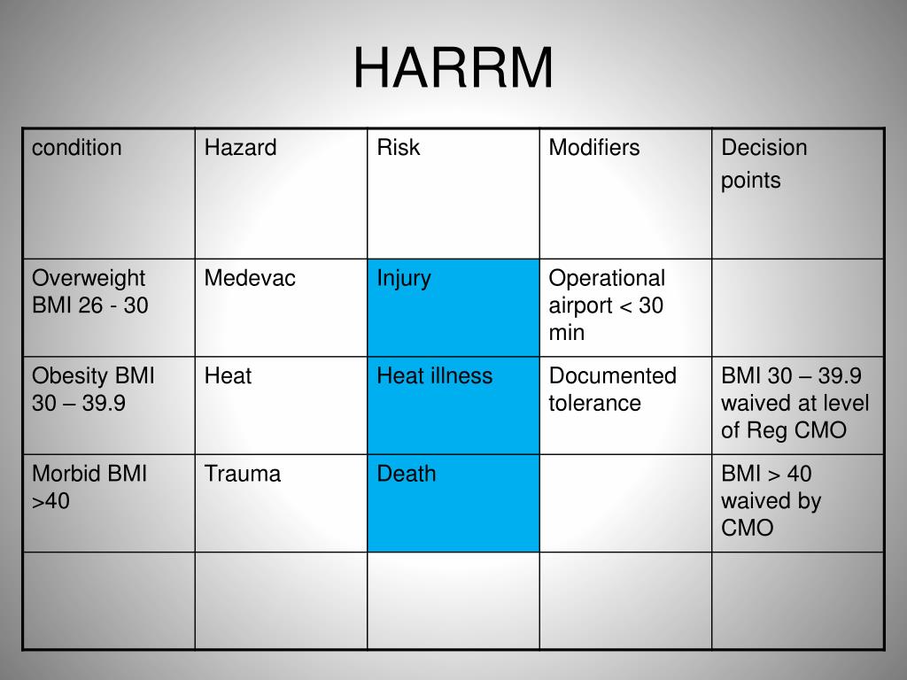 HARRM • BMI • CAD • HTN • DM • Asthma COPD
