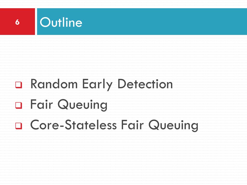 Outline Random Early Detection Fair Queuing Core-Stateless Fair Queuing