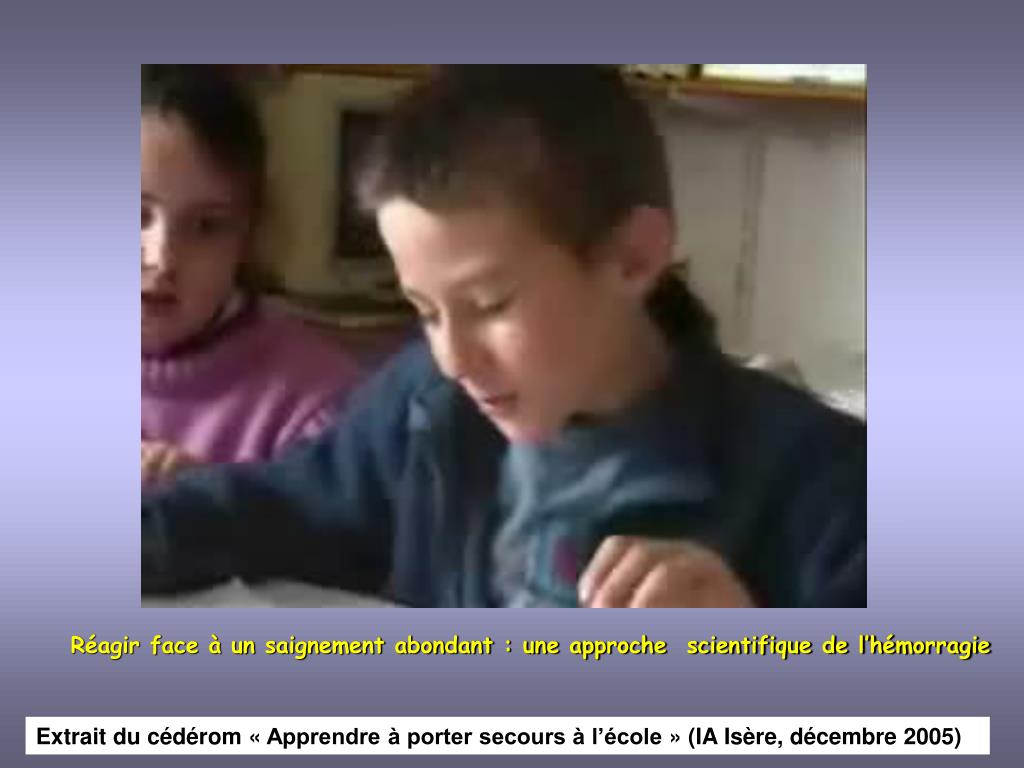 De l’apprentissage des premiers secours aux apprentissages en sciences Extrait du cédérom « Apprendre à porter secours à l’école » (IA Isère, décembre 2005)