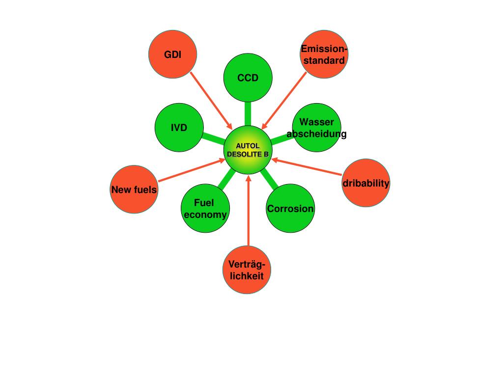 Wasser abscheidung Neue Kraftstoffe Motoren Anforderungen an AUTOL DESOLITE B Keine Ablagerungen an den Düsen Anti corrosion Neue Motorenkonzepte Höhere Leistung emission Saubere Einlaßventile MPI einspritzung Neue Materialien drivability No harmfull Direktein spritzung