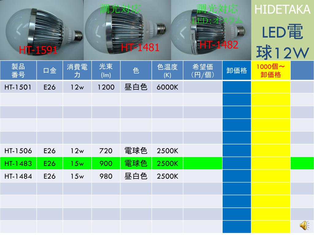 調光対応 調光対応 HIDETAKA LED電球12W LED:オスラム HT-1482 HT-1481 HT-1591