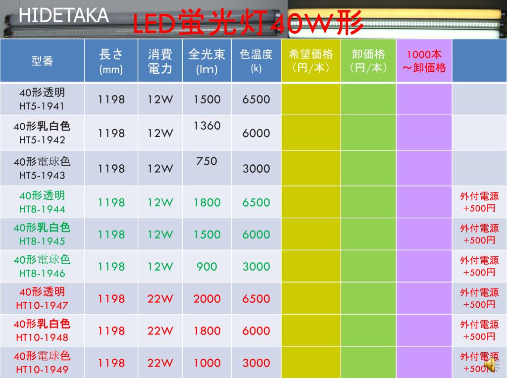 LED 照明器具、 LED 電子看板 太陽光発電、ソーラー充電器 専門卸販売、中国工場直輸入. HIDETAKA CO.,LTD 株式会社 秀 隆. LED 照明器具 全品一年保証. 〒 130-0005 東京都墨田区東駒形4-1-7-102室 TEL/FAX : 03-3829-3539 skype : lin8592 http// www.ledhidetaka.com E-mail : hidetaka9199@yahoo.co.jp. HIDETAKA. LED 蛍光灯 20W 形. HIDETAKA. LED 蛍光灯 40W 形.