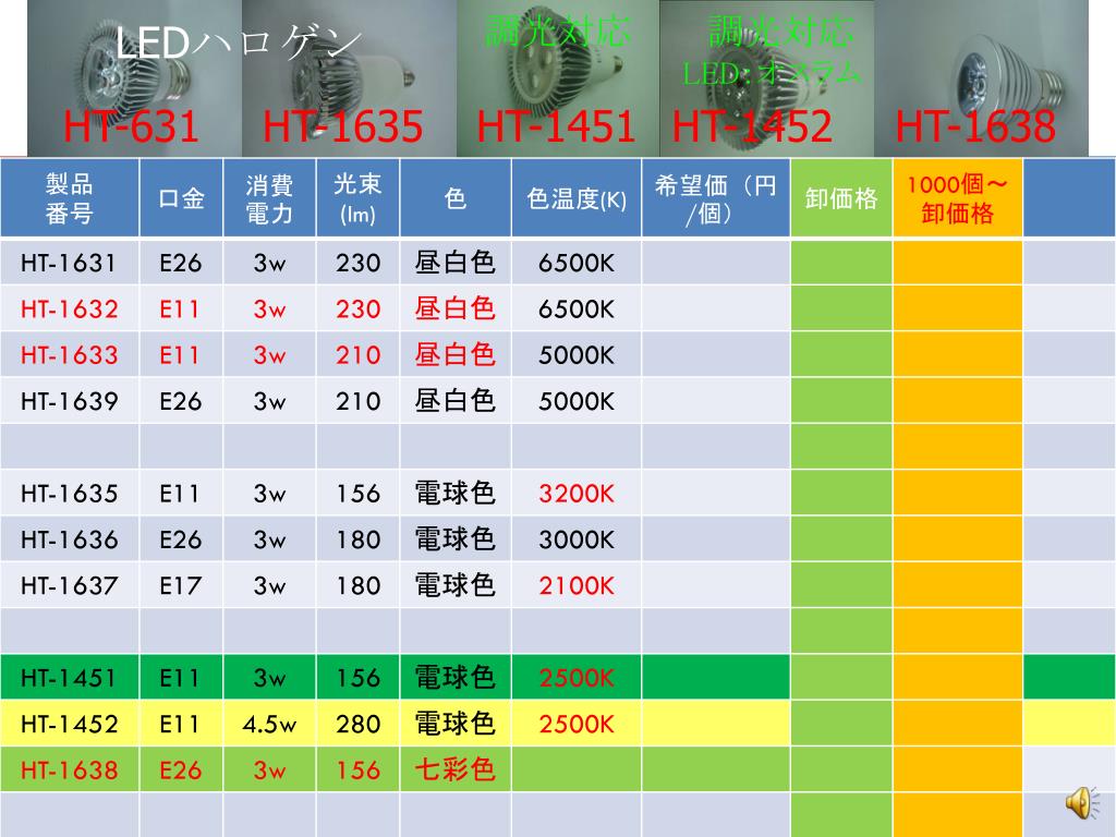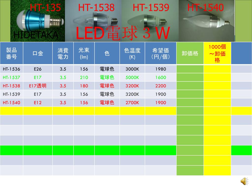HT-135 HT-1538 HT-1539 HT-1540 LED電球3W HIDETAKA