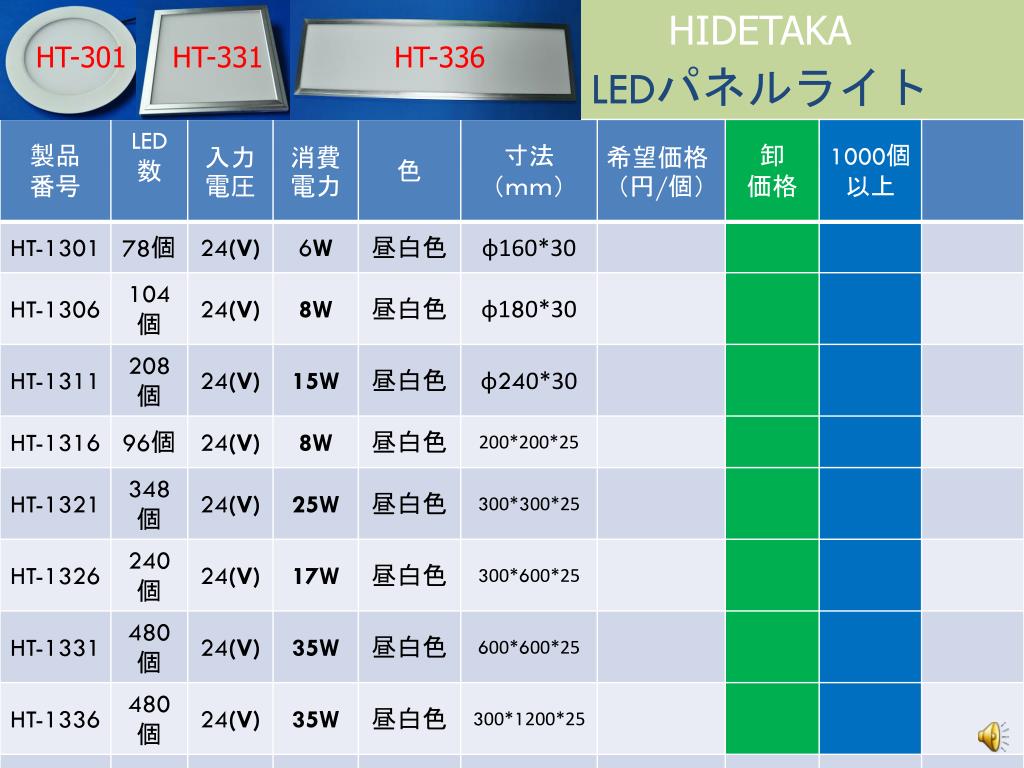 HIDETAKA LEDパネルライト HT-301 HT-331 HT-336