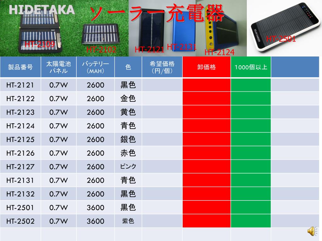 HIDETAKA ソーラー充電器 HT-2501 HT-2109 HT-2131 HT-2102 HT-2121 HT-2124