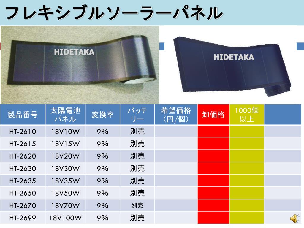 フレキシブルソーラーパネル HIDETAKA HIDETAKA