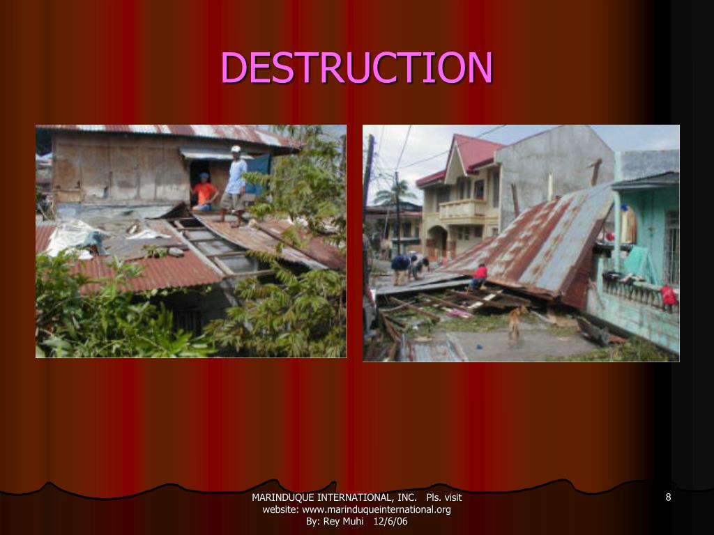 DESTRUCTION MARINDUQUE INTERNATIONAL, INC. Pls. visit website: www.marinduqueinternational.org By: Rey Muhi 12/6/06