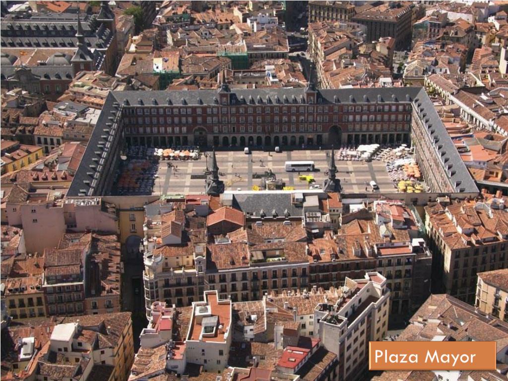 La mayor parte de las plazas del actual casco antiguo de Madrid se abrieron durante el siglo XIX (desamortizaciones). Entre las plazas conviene destacar la Plaza Mayor, típica plaza mayor castellana barroca inaugurada en 1617 en las afueras del casco antiguo; la Puerta del Sol urbanizada con su aspecto actual a mediados del XIX; entre las avenidas destacamos las rondas de Segovia, Toledo y Atocha.
