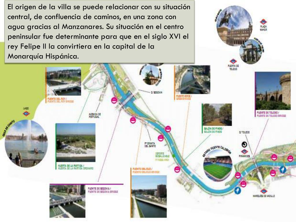 b) Análisis del plano El origen de Madrid está en la época islámica (Magerit). Tras la conquista castellana medieval Madrid (1085) se convirtió en villa y en el siglo XVI, bajo el reinado de los Austrias, el rey Felipe II la convirtió en sede permanente de la Corte (1561) y por tanto en la capital de la Monarquía Hispánica (Villa y Corte).