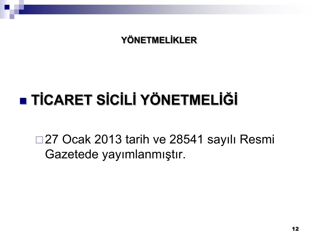 YÖNETMELİKLER • TİCARET SİCİLİ YÖNETMELİĞİ • 27 Ocak 2013 tarih ve 28541 sayılı Resmi Gazetede yayımlanmıştır.