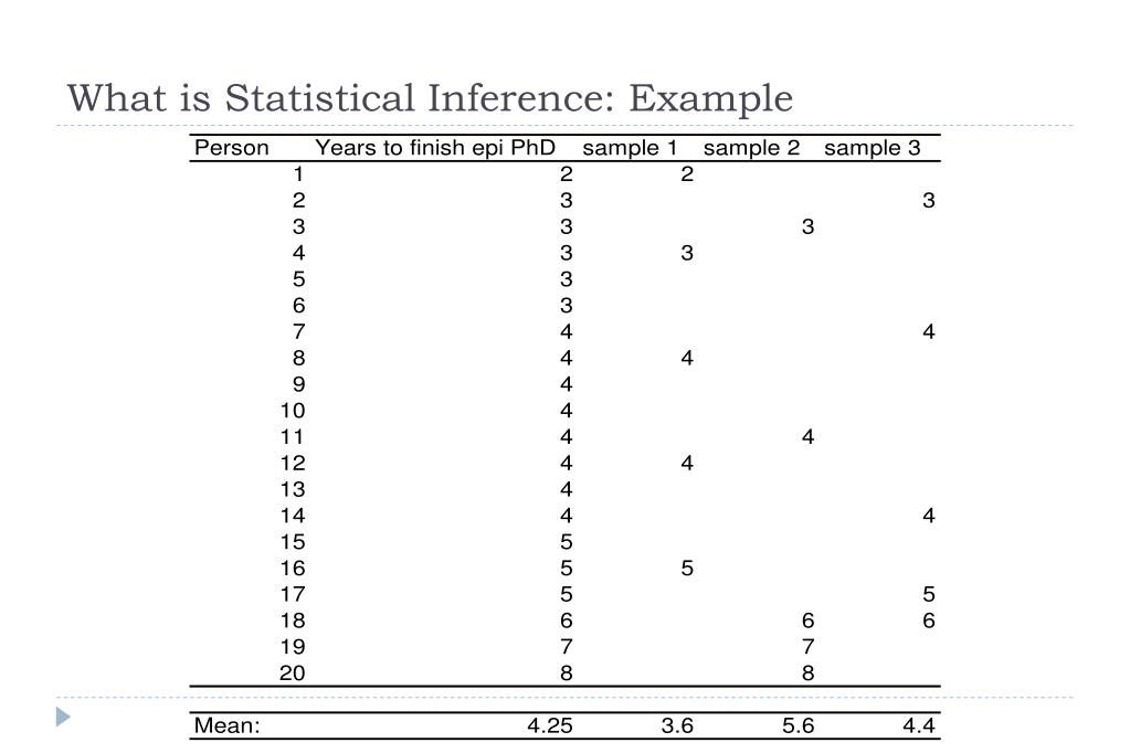 What is Statistical Inference? • We want to be able to generalize from a study sample to the source population • The study sample comes from a source population, but it’s only one of many samples that could have been drawn by chance • You want to quantify your certainty about how well this sample represents the source population • In terms of any possible measure from that study (e.g., mean, prevalence, RR, RD etc) Source Population Study Sample ??