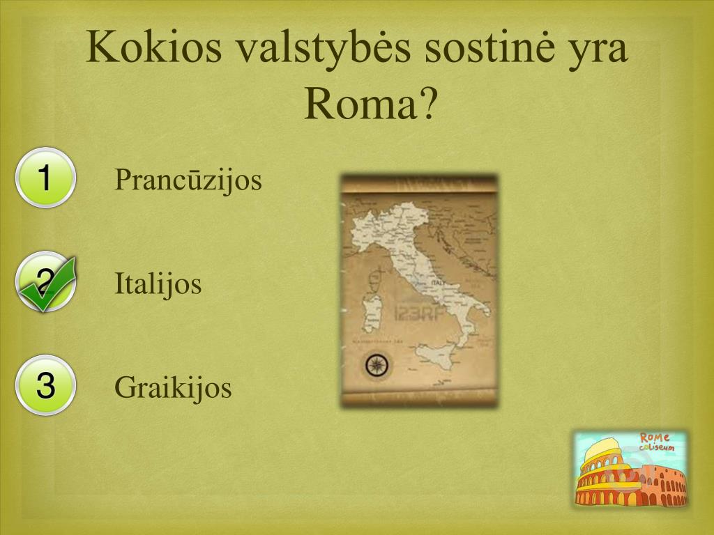 Kokios valstybės sostinė yra Roma? Prancūzijos Italijos Graikijos