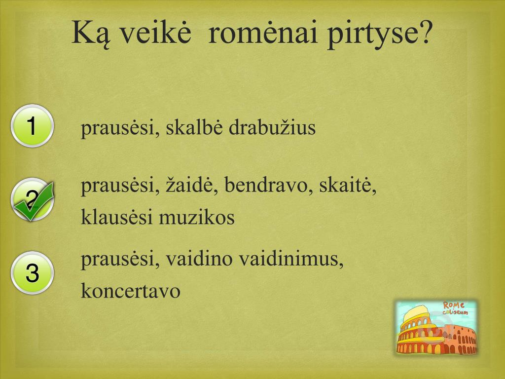 Aptarębūdingiausius senovės Romosbruožus „Išdykusių pelių“ pagalba pasitikrinsite, ką sužinojote, įsiminėte.