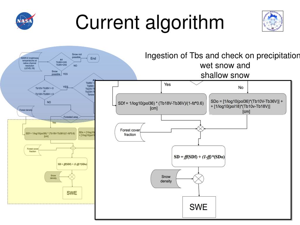 Current algorithm Ingestion of Tbs and check on precipitation, wet snow and shallow snow