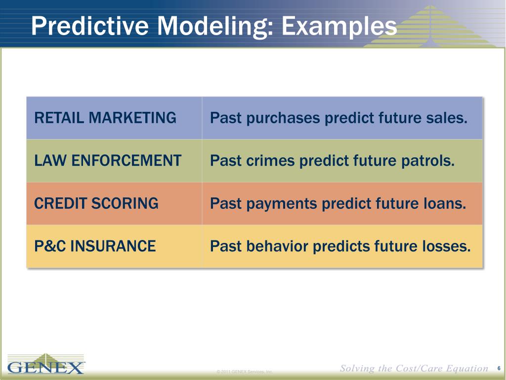 Predictive Modeling: Claims • Predict which claims are • Costly/complex • Likely to benefit from case management • Identify claims with demonstrated risk • Clinical alerts • Medication safety