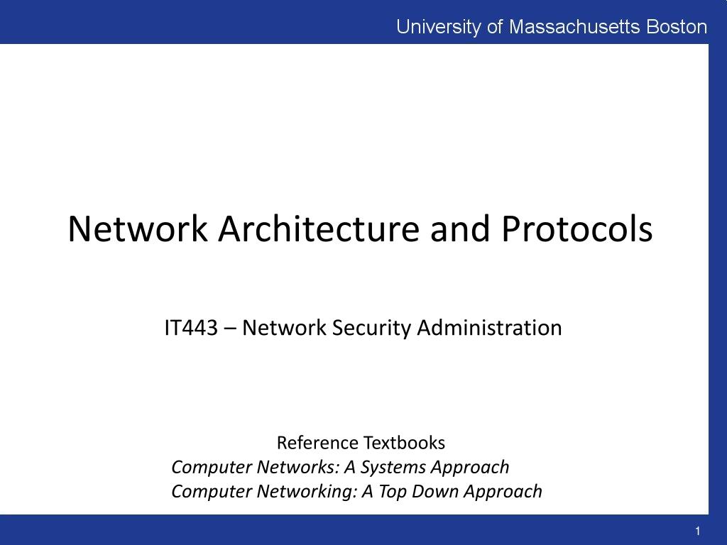 Network Architecture and Protocols IT443 – Network Security Administration Reference Textbooks Computer Networks: A Systems Approach Computer Networking: A Top Down Approach