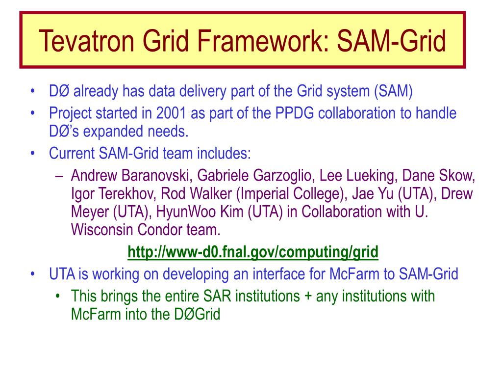 Fermilab Grid Framework (SAM-Grid) UTA Status DØ Computing Effort DoE Site Visit, Jae Yu