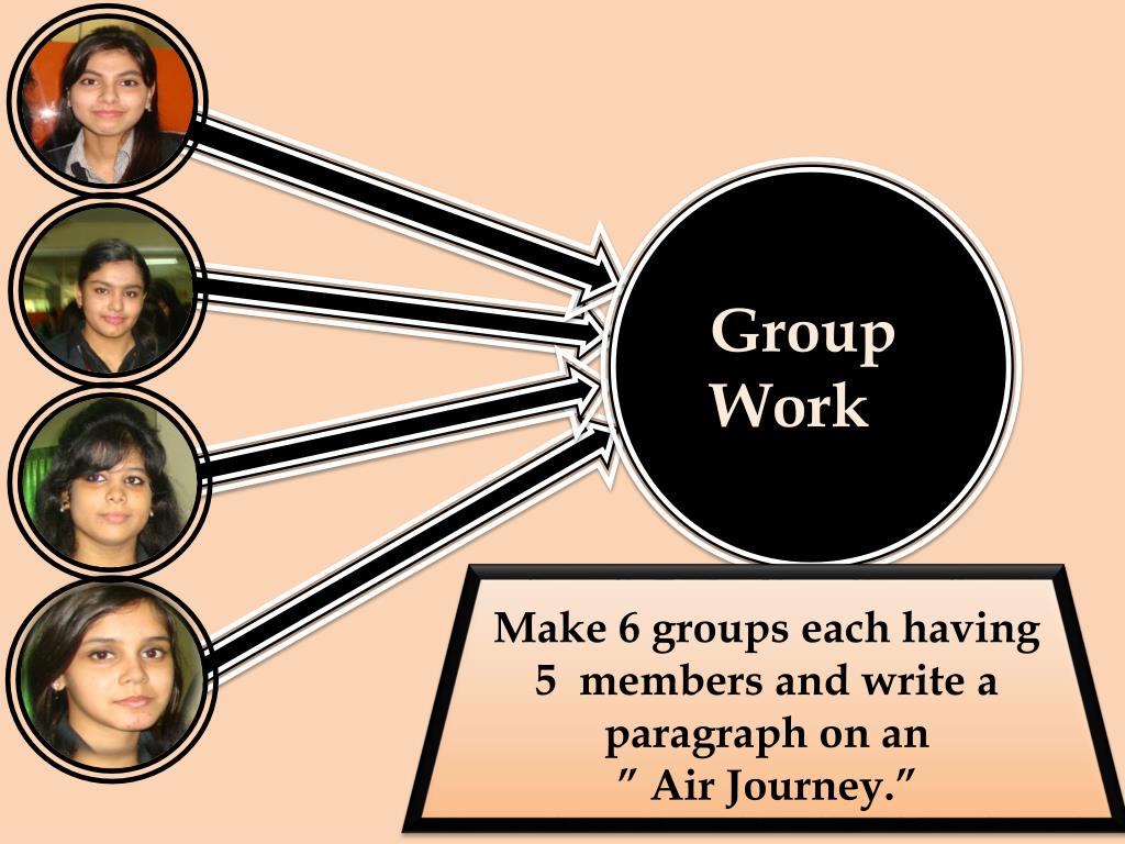 Group Work Make 6 groups each having 5 members and write a paragraph on an ” Air Journey.”