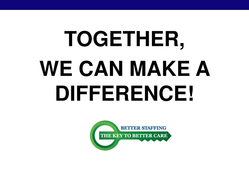 What can you do? • Join the Consumer Voice Nursing Home Staffing Campaign! • Go to: www.theconsumervoice.org/betterstaffing • Email: info@theconsumervoice.org • Call Consumer Voice at: 866-992-3668 (toll-free)