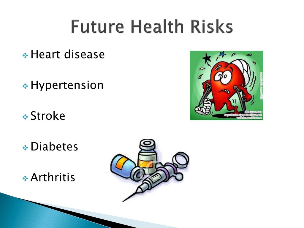 Future Health Risks • Heart disease • Hypertension • Stroke • Diabetes • Arthritis