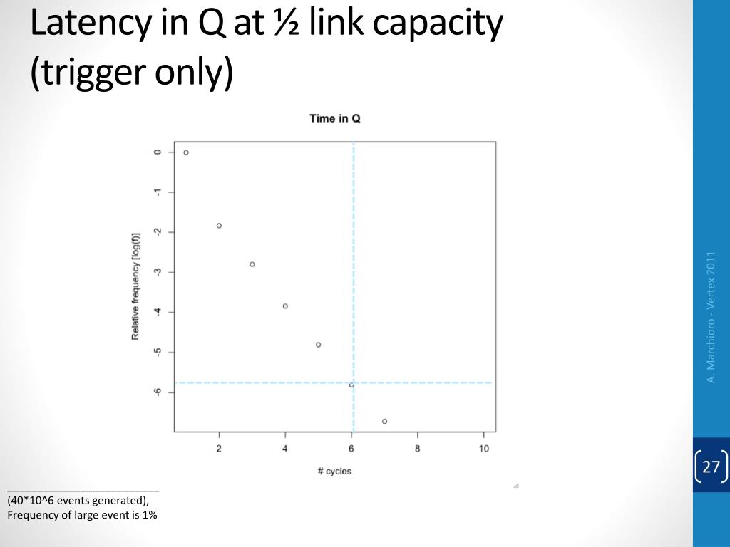 Latency in Q at ½ link capacity (trigger only) A. Marchioro - Vertex 2011 _________________________ (40*10^6 events generated), Frequency of large event is 1%