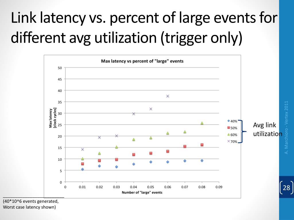 Link latency vs. percent of large events for different avg utilization (trigger only) Avg link utilization A. Marchioro - Vertex 2011 _________________________ (40*10^6 events generated, Worst case latency shown)