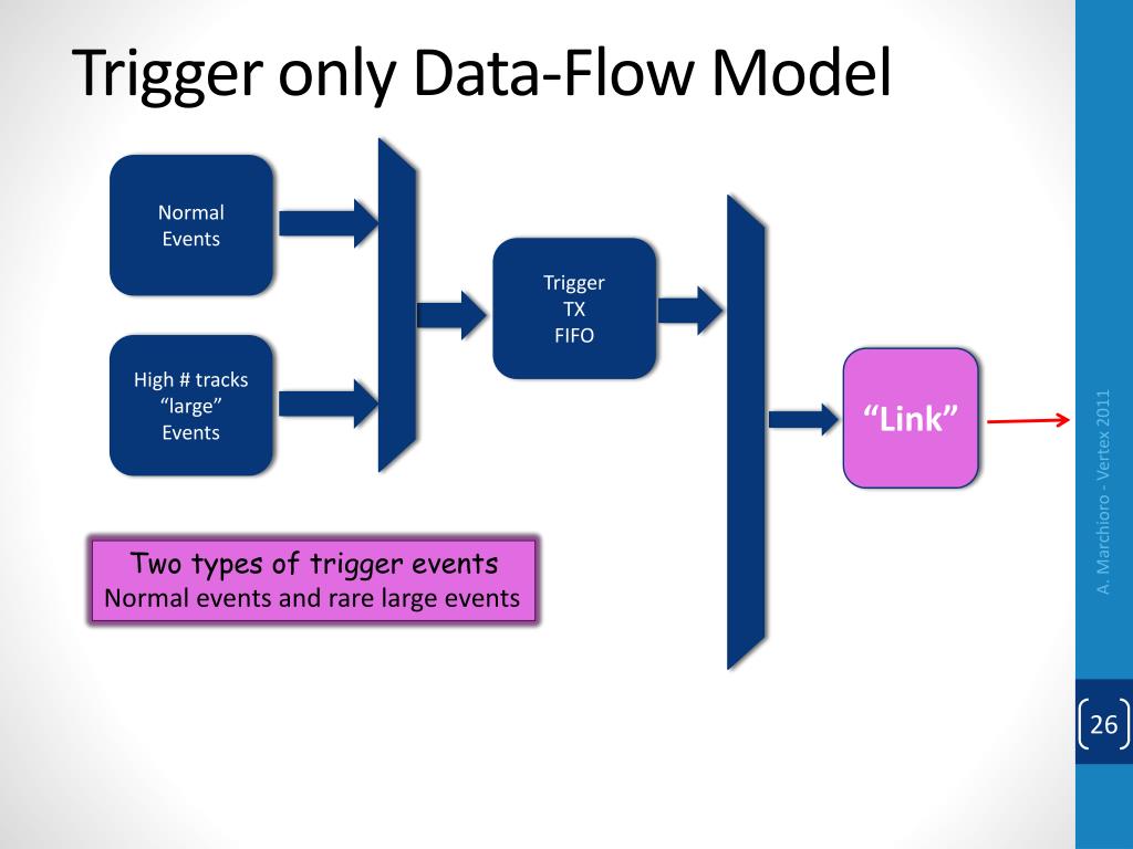 Trigger only Data-Flow Model Normal Events Trigger TX FIFO High # tracks “large”Events “Link” A. Marchioro - Vertex 2011 Two types of trigger events Normal events and rare large events