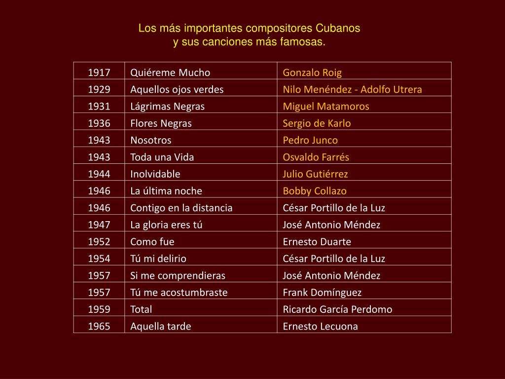 Los más importantes compositores Cubanos y sus canciones más famosas.