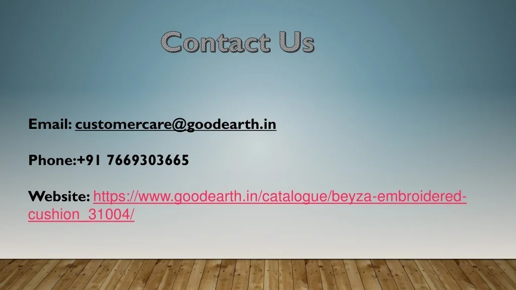 Contact Us Email: customercare@goodearth.in Phone:+91 7669303665 Website: https://www.goodearth.in/catalogue/beyza-embroidered-cushion_31004/
