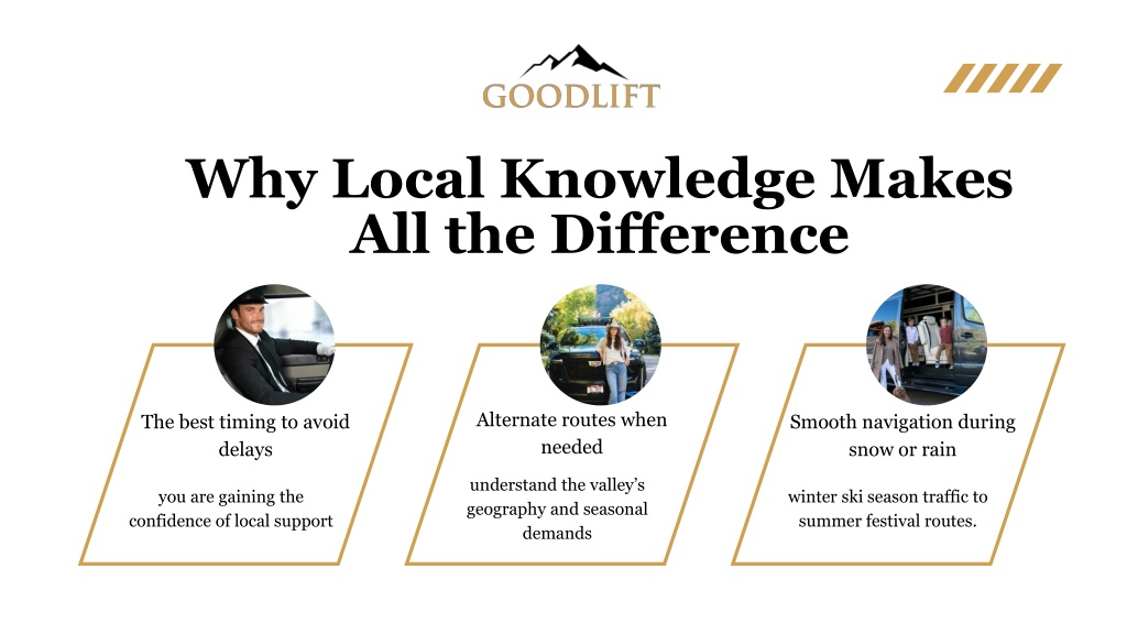 Why Local Knowledge Makes All the Difference Alternate routes when needed The best timing to avoid delays Smooth navigation during snow or rain understand the valley’s geography and seasonal demands you are gaining the confidence of local support winter ski season traffic to summer festival routes.