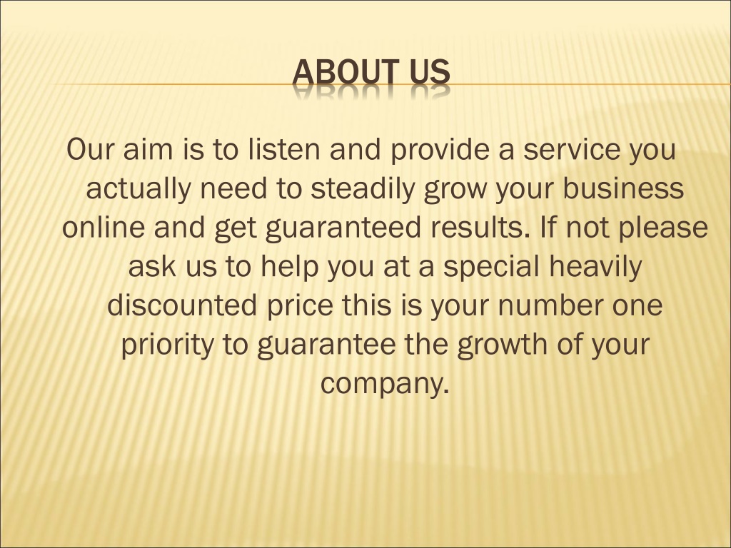 Our aim is to listen and provide a service you actually need to steadily grow your business online and get guaranteed results. If not please ask us to help you at a special heavily discounted price this is your number one priority to guarantee the growth of your company. ABOUT US