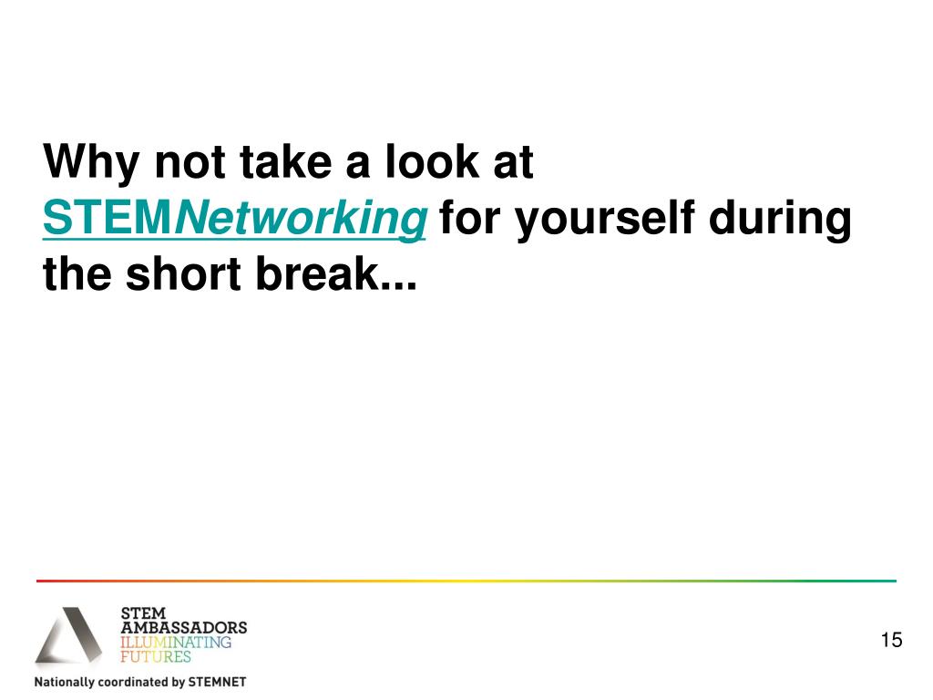 Why not take a look atSTEMNetworking for yourself during the short break... 15