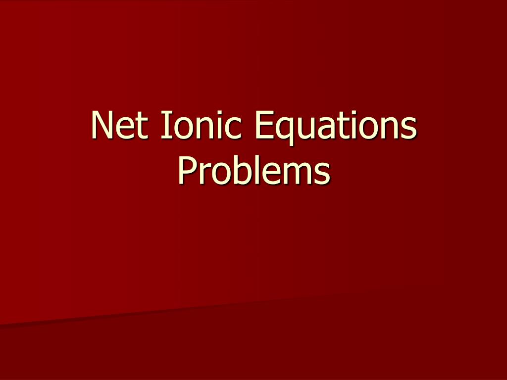 Net Ionic Equations • Identify what is soluble or insoluble and write the net ionic equation • Ca(NO3)2 + Na2CO3 → NaNO3 + CaCO3 • Ca2+ (aq) + CO32-(aq) → Ca(CO3) (s) • Fe(ClO3)2 + NaCH3COO → NaClO3 + Fe(CH3COO)2 • No net ionic equation • Pb(NO3)4 + (NH4)2SO4 → Pb(SO4)2 + NH4NO3 • Pb4+ (aq) + 2 SO42-(aq) → Pb(SO4)2 (s)