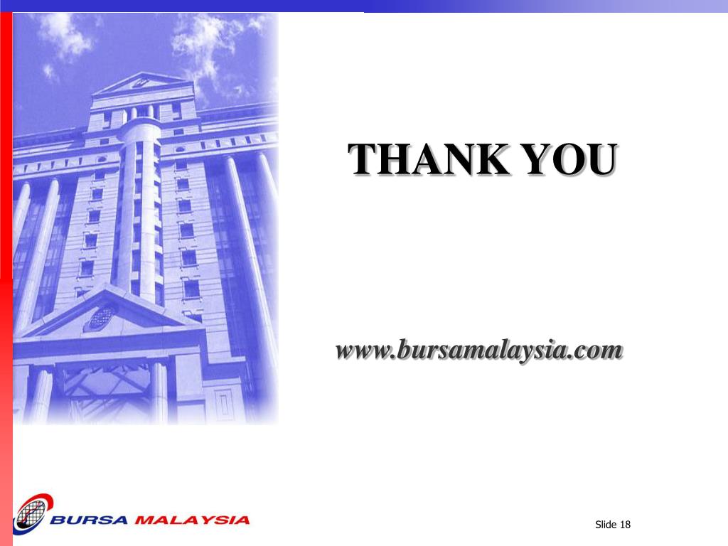 SPEEDS • As at 30 April 2008, Bursa Depository has processed bonus issues, Subdivision of Shares and Shares Consolidations involving 106 counters. • With earlier listing and non-suspension of counters has resulted in increased trades with estimated values of more than 4.3 Billion Malaysian Ringgit.