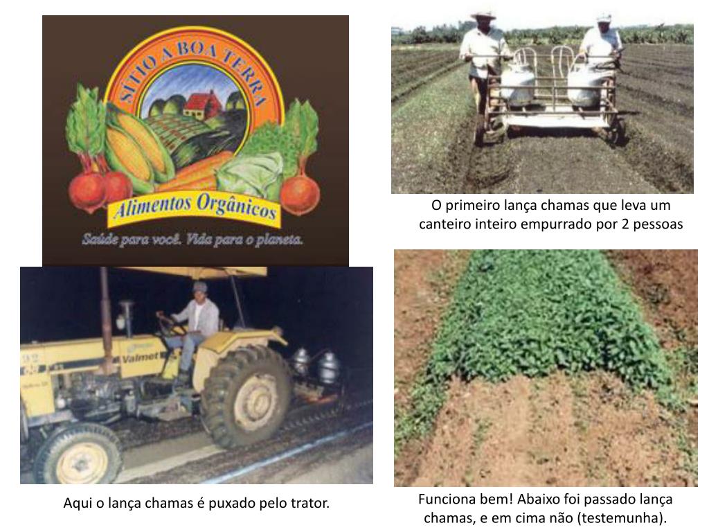 O primeiro lança chamas que leva um canteiro inteiro empurrado por 2 pessoas • Aqui o lança chamas é puxado pelo trator. • Funciona bem! Abaixo foi passado lança chamas, e em cima não (testemunha).