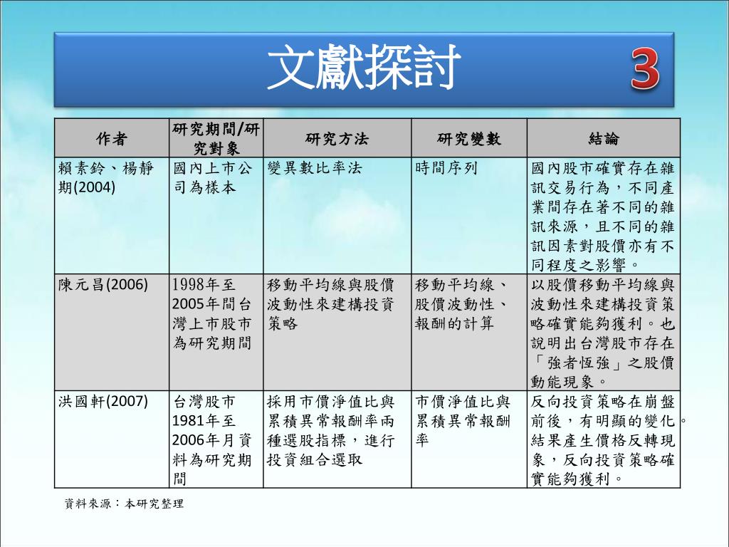 3 文獻探討 資料來源:本研究整理